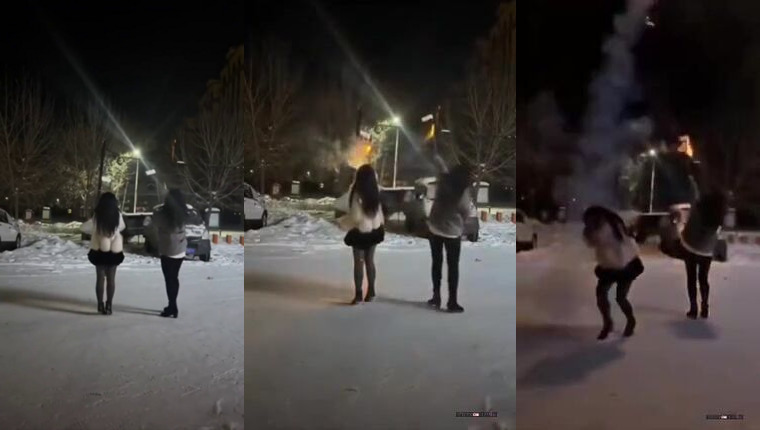 Nic moc se jí asi nestalo, to nebyl plamen, ale nasvícenej kouř a přeexponovaná kamera. Mohly to odnýst prsty, když odmítla pustit tu špejli. A možná bude poďobaná od tý petardy těsně u ksichtu.
