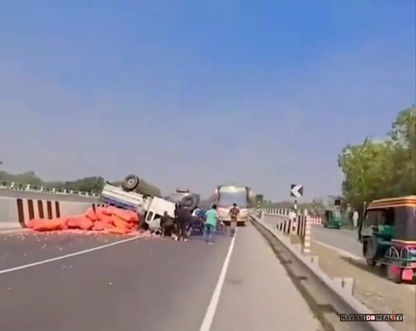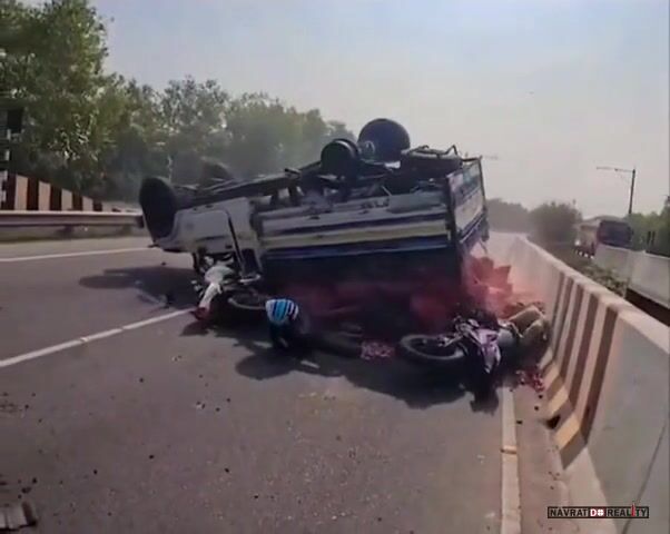 Motocyklisté nedobrzdili své stroje před nehodou dodávky převážející pytle brambor