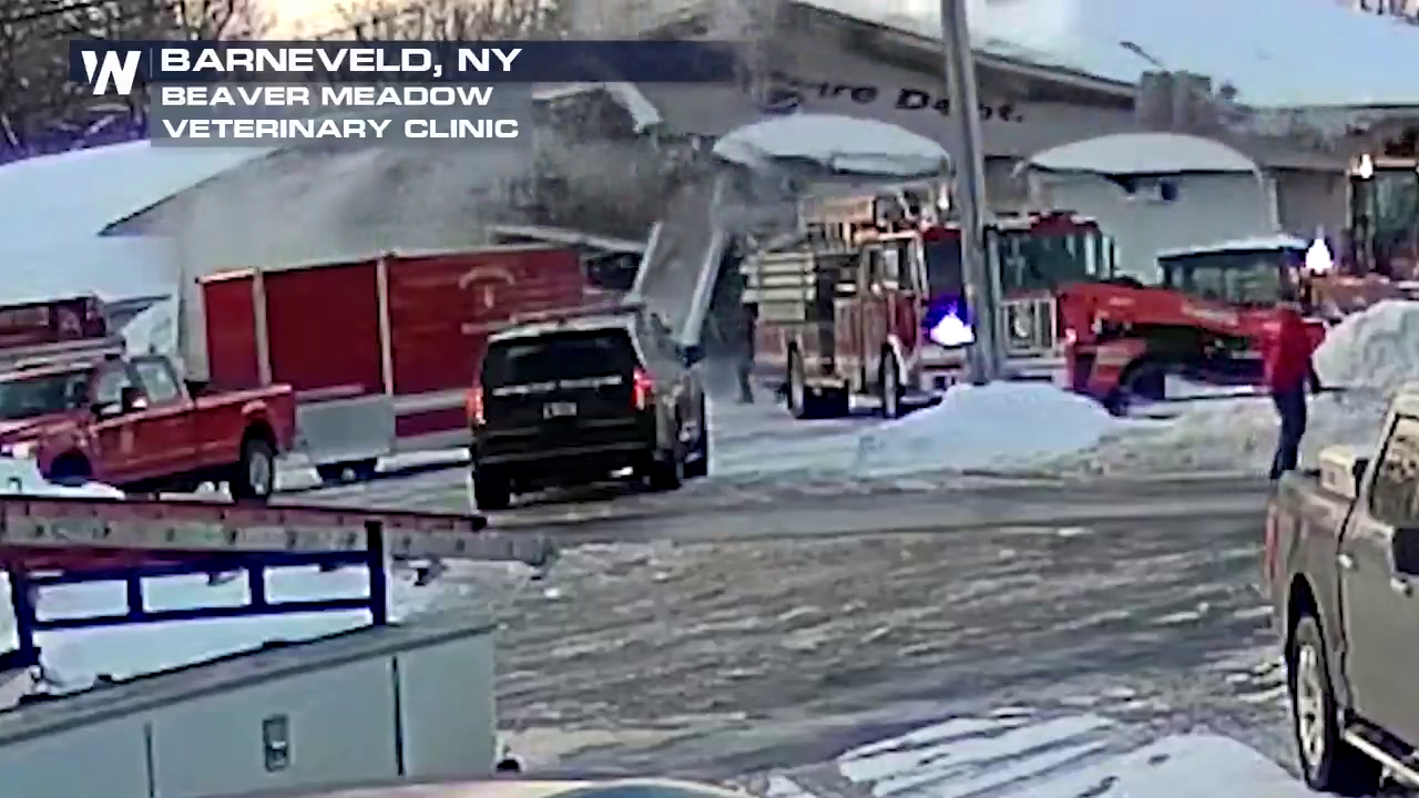 Hasičská stanice dobrovolných hasičů v Barneveldu v okrese Oneida se 22. února zřítila pod tíhou sněhu poté, co členové jednotky objevili strukturální poškození a pokusili se odstranit sníh ze střechy. Před kolapsem slyšeli praskání v konstrukci a rychle zahájili evakuaci budovy i přesun vybavení. Krátce poté se stavba zhroutila, naštěstí se nikdo nezranil. Těžké sněžení, které trvalo od 14. do 19. února, způsobilo zřícení více než 26 budov v oblasti, včetně recyklačního centra a dalších objektů v Trentonu. Některé části Oswego County zaznamenaly až dva metry sněhu. Přes ztrátu stanice hasiči ujišťují veřejnost, že jejich služby pokračují bez přerušení.