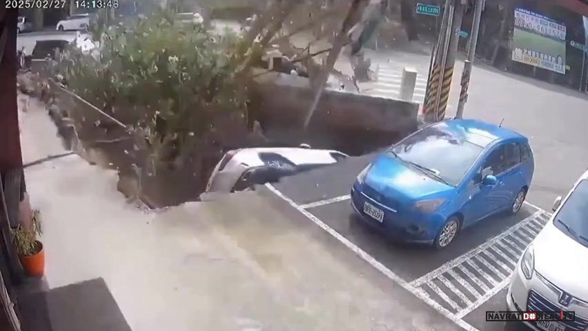 V obchodní čtvrti v okrese Hsinchu na Tchaj-wanu se 27. února náhle otevřela obří propadlina a pohltila zaparkované auto. Naštěstí v něm nikdo nebyl a nikdo nebyl zraněn. Úřady zjistily, že plošina, na které se auto nacházelo, byla nelegálně postavena za účelem rozšíření parkovacích míst. Konstrukci podpíraly ocelové nosníky, které kvůli korozi selhaly a způsobily zhroucení celé plošiny.