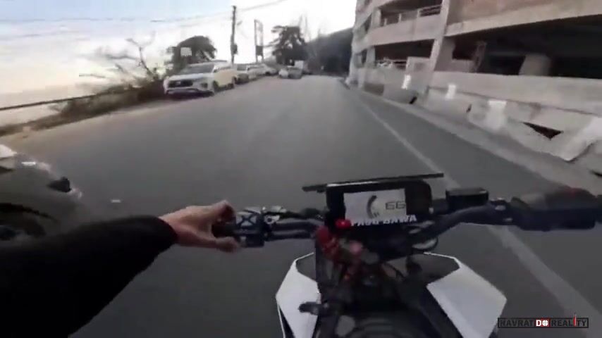 Motorkář snažící se rychle projet městem