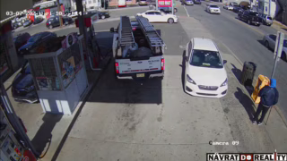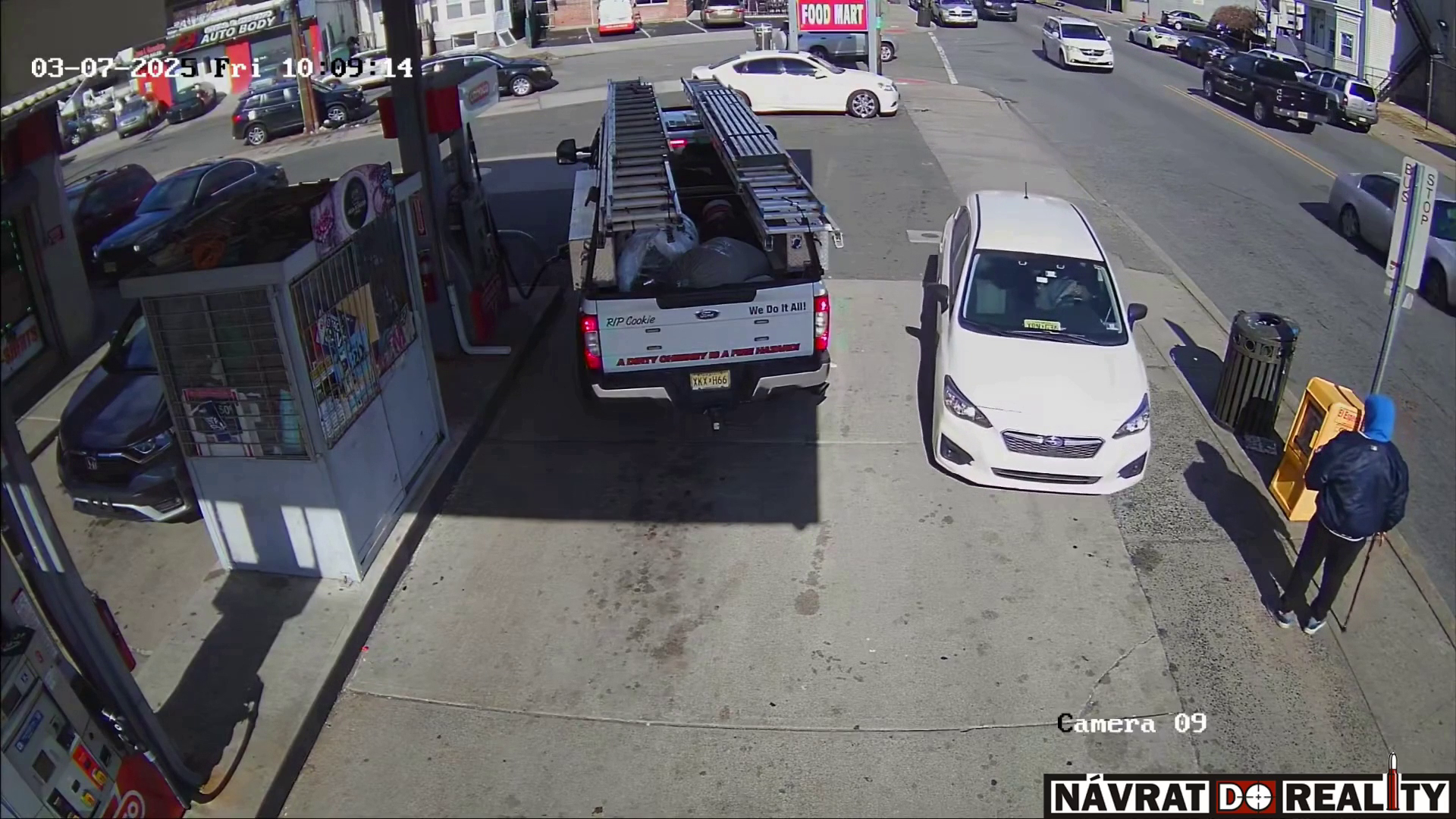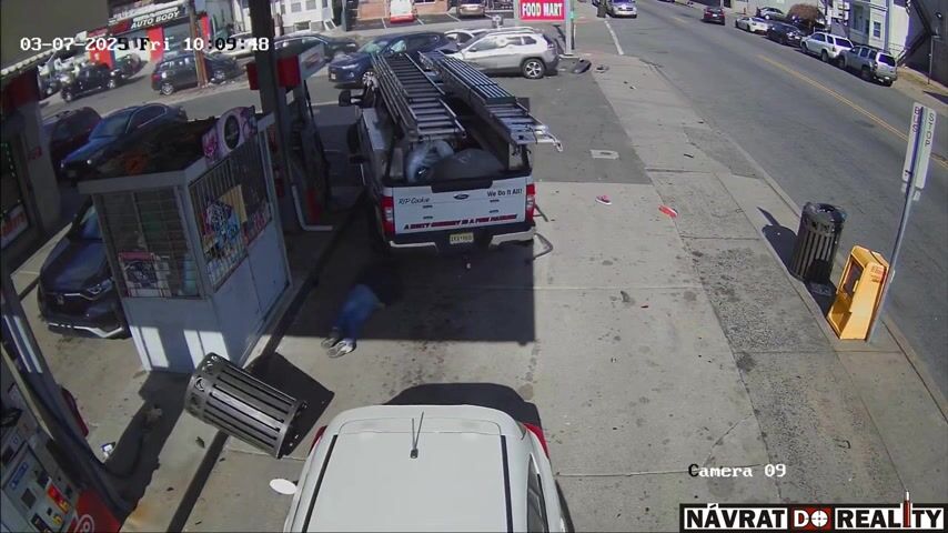Celou nehodu zachytily tři bezpečnostní kamery, jejichž záznamy nyní vyhodnocují vyšetřovatelé. Podle dostupných informací řidič SUV na Main Street náhle přejel do protisměru a následně vjel na chodník, kde narazil do odpadkového koše, který odmrštil a zranil zaměstnance čerpací stanice. Řidič SUV byl po nehodě hospitalizován a policie nyní zjišťuje přesnou příčinu tragédie.