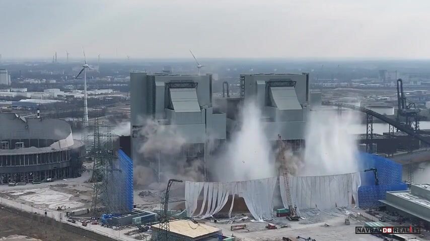 Explozivní nálože o hmotnosti 600 kg byly umístěny do každé z kotelen a odpáleny kolem 9:30 ráno. Zatímco první budova se zřítila podle očekávání, druhá zůstala stát, ačkoliv se na ní objevil nečekaný požár. Důvody selhání demolice se nyní vyšetřují. Na místě bývalé elektrárny má vzniknout závod na výrobu „zeleného“ vodíku, jehož cena se odhaduje na 7,5 miliardy Kč, přičemž více než polovinu financuje spolková vláda.