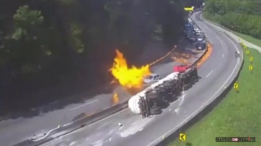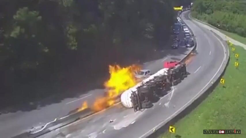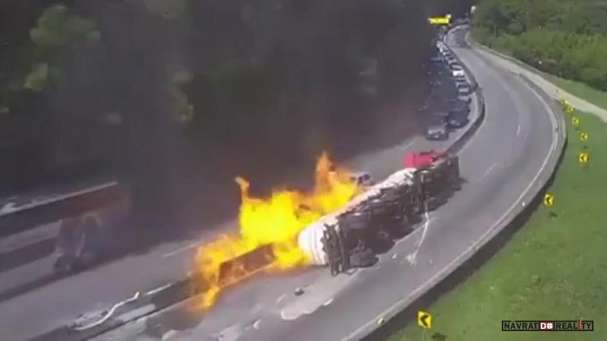 V brazilském státě Santa Catarina došlo v neděli odpoledne k vážné nehodě, když se na frekventované dálnici převrátila cisterna převážející ethanol a okamžitě vzplála. Hořící kapalina se rozlila po vozovce a zasáhla 22 osobních aut a 3 nákladní vozy. Motoristé v panice opouštěli svá vozidla a utíkali pryč. Pět lidí utrpělo zranění, včetně řidiče cisterny a jeho manželky, kteří byli popáleni na rukou a nohou. Na místo dorazili hasiči z několika měst, aby dostali požár pod kontrolu. Kvůli nehodě byla dálnice v obou směrech uzavřena a z oblasti muselo být odvezeno i vozidlo s výbušninami.
