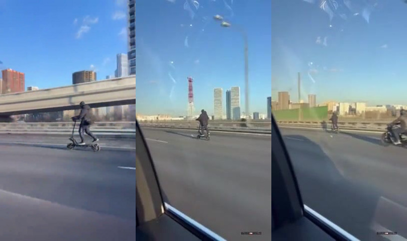 Jezdec na elektrokoloběžce natočený při rychlosti téměř 100 km/h