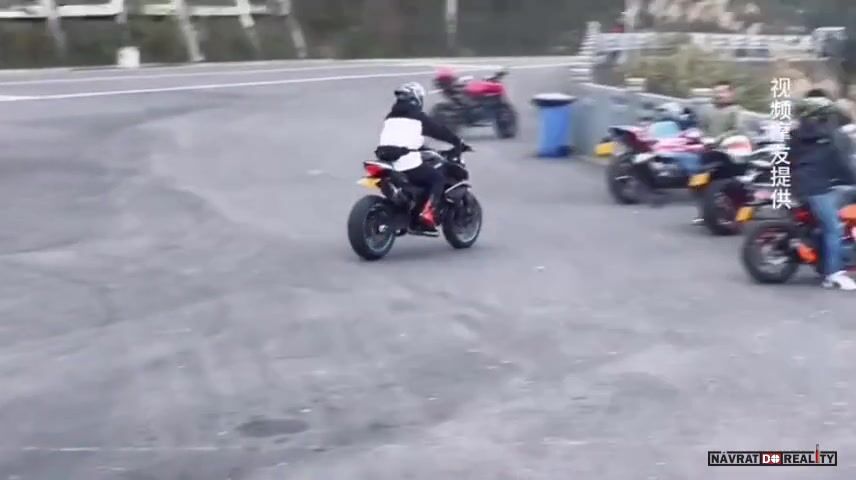 Pokus o wheelie na motorce