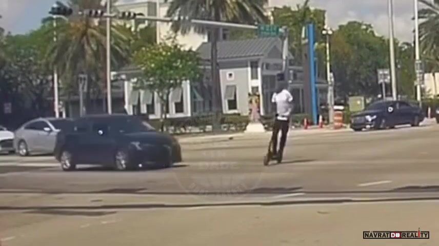 není to skútr, ale koloběžka a není to řidič, ale negr na koloběžce. Ach jo