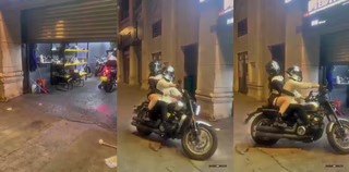 Motorkář se chlubí svou motorkou a přítelkyní...