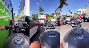 Dva pruhy, dvě vozidla. Motorka tak správně nemá co dělat. Viníkem motorkář jednoznačně je.