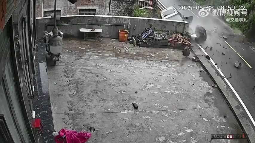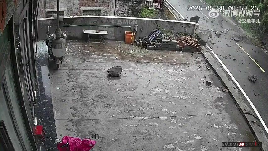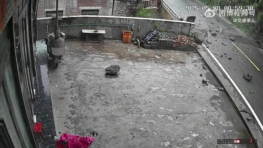 Sesuv kamenů zasáhl auto na silnici