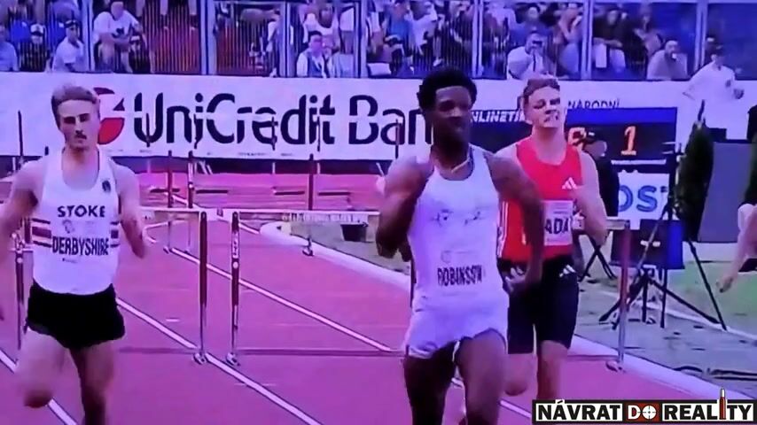 Americký překážkář Chris Robinson se stal nečekaným hrdinou na Zlaté tretře v Ostravě, když dokázal zvítězit v závodě na 400 metrů překážek i přes velmi nepříjemnou situaci – během běhu mu z trenýrek vypadl penis, protože neměl spodní prádlo. K incidentu došlo přibližně po 150 metrech běhu, kdy se Robinson musel začít neustále upravovat, přesto si dokázal udržet vysoké tempo. Přes veškeré potíže, včetně nárazu do deváté překážky a neustálého vyhrnování šortek, si doběhl pro vítězství v čase 48,05 sekundy, což je jeho nejlepší výkon sezony. Po doběhu se skácel na zem a s rozpačitým výrazem sledoval soupeře i kamery, které vše zachytily. Nešťastný moment byl totiž přenášen živě a zpomalený záznam závěrečných metrů, kde byl jeho penis viditelný, se opakovaně objevil na obrazovkách. Komentátor World Athletics Tim Hutchings celý incident glosoval s úsměvem jako „selhání výbavy“ a ocenil Robinsonovu odvahu a koncentraci i přes trapnou situaci. Televizní stanice se následně musela divákům omluvit. Navzdory bizarním okolnostem se tak Robinson stal nejen vítězem závodu, ale i nečekanou hvězdou večera.