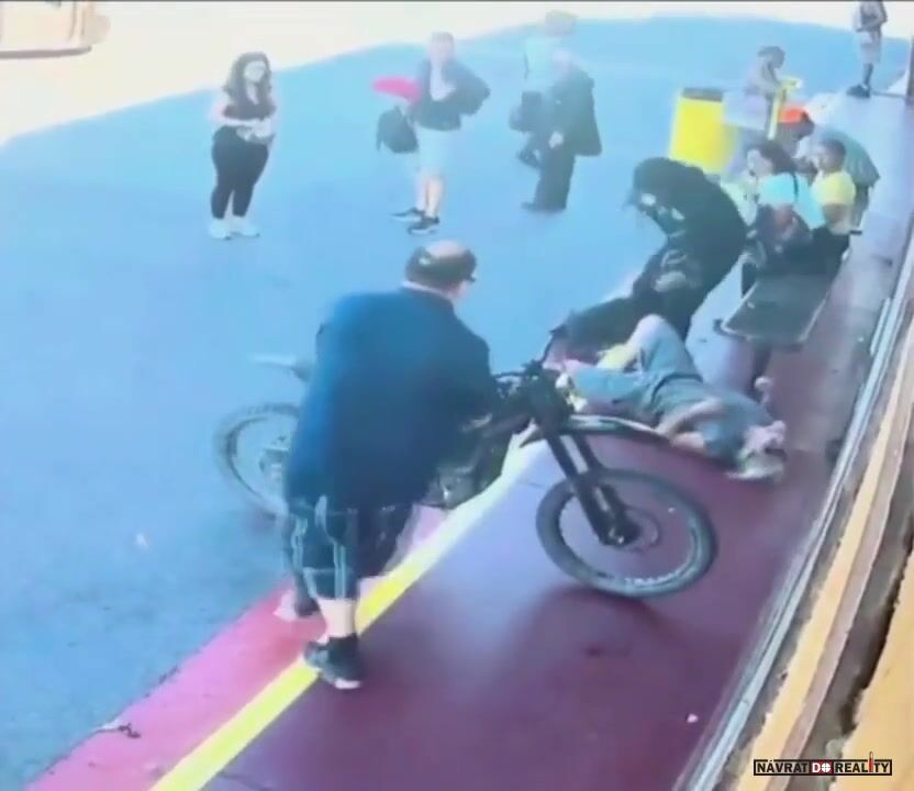 Skútr nemá spojku ani neutrál, ale jen variátor a pokud je nastartovaný, stane se něco podobného jako na videu.
