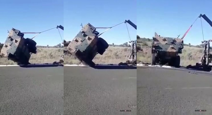 Teď zas na oplátku můžou obrněncem vyprošťovat ten jeřáb.