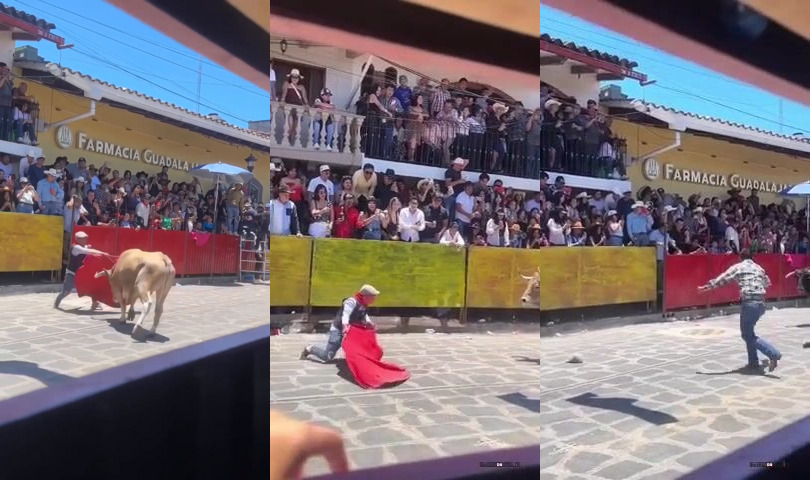 Na jedné z ulic v Mexiku se během improvizované ukázky toreador snažil ohromit přihlížející svým vystoupením s býkem. Po několika manévrech, kdy se mu podařilo zvíře unavit, získal přílišnou sebedůvěru, poklekl na zem a mával svou červenou kápí. V tu chvíli se však na scéně objevil druhý býk, který nečekaně zaútočil. Silným nárazem muže vymrštil do vzduchu a odhodil ho několik metrů daleko, zatímco vyděšení diváci přihlíželi dramatické situaci.