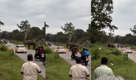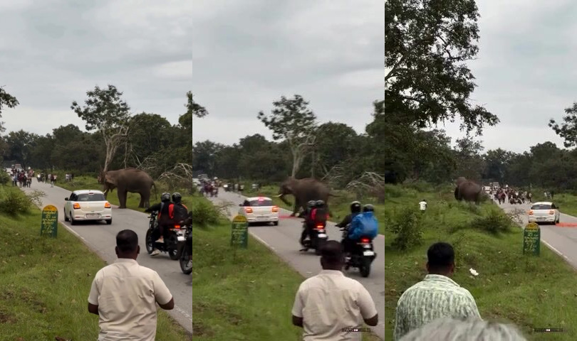 V indické tygří rezervaci Bandipur, na silnici spojující Tamilnádu s Karnátakou, došlo k nebezpečné situaci. Slon se zde klidně krmil mrkvemi, které se vysypaly z projíždějícího nákladního vozu, a zatímco na jeho odchod trpělivě čekala dlouhá kolona aut, jeden netrpělivý muž se rozhodl projít příliš blízko k obřímu zvířeti. Tento neopatrný krok slona vyprovokoval k prudkému útoku, při kterém se rozběhl přímo proti muži.