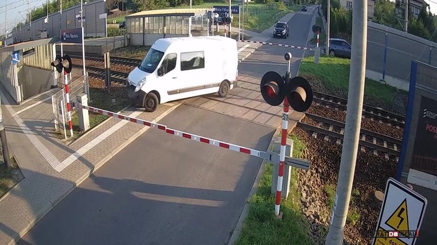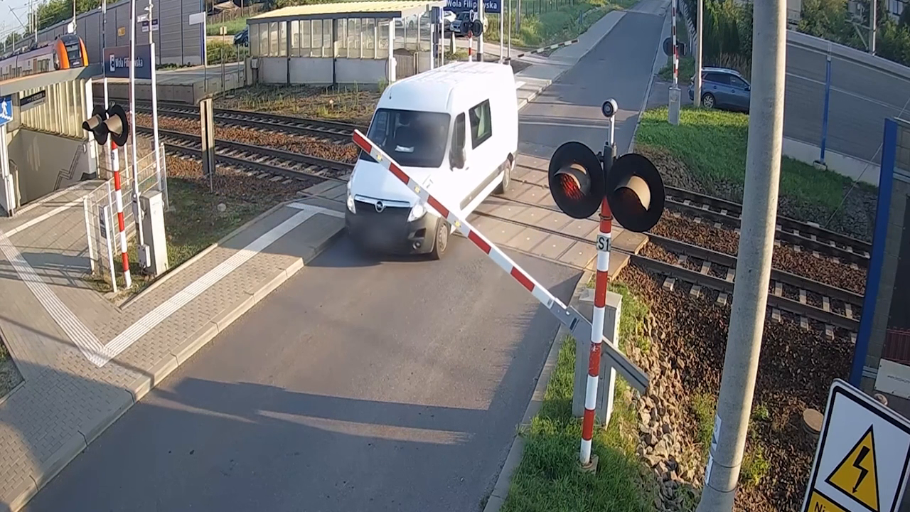 V pátek 1. srpna 2025 došlo v polském Krakově k nebezpečné události na železničním přejezdu, když se dodávka ocitla uvězněná mezi spuštěnými závorami. Řidič stál před těžkým rozhodnutím – buď prorazit závory a riskovat poškození svého vozu, nebo zůstat stát na kolejích. Nakonec se rozhodl závory neporušit a zastavil své pracovní vozidlo těsně u okraje kolejí. Krátce poté přijíždějící vlak narazil do dodávky a zcela ji zdemoloval. Přestože materiální škoda byla značná, velkým štěstím je, že při incidentu nebyl nikdo zraněn.