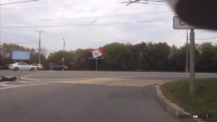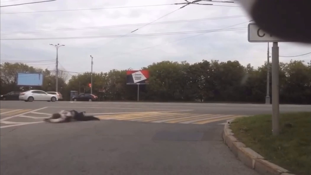 Debilní Rusák, pěkně to vzal zády o obrubník, ale od války ho to nezachrání, pojede i na kriplkáře.
