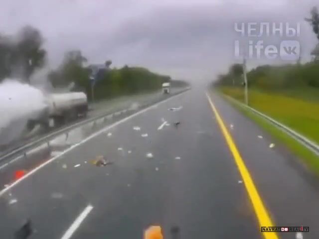 Na ruské dálnici M-12 v Arzamasském okrese Nižněgorodské oblasti došlo 23. srpna kolem poledne k tragické dopravní nehodě, při níž se srazil kamión převážející automobily s kamiónem vezoucím cisternu se zkapalněným oxidem uhličitým. Po nárazu došlo k mohutné explozi, která připravila o život řidiče cisterny, jenž na místě podlehl vážným zraněním. Další dvě osoby – dospělý a dítě, kteří projížděli kolem v osobním automobilu – utrpěly zranění a byla jim poskytnuta lékařská pomoc. Na místě stále pracují dopravní policisté, kteří zjišťují přesné příčiny nehody, a provoz na tomto úseku je značně omezen, přičemž řidiči musí využívat objízdnou trasu přes 394. kilometr magistrály.