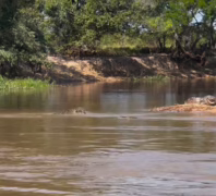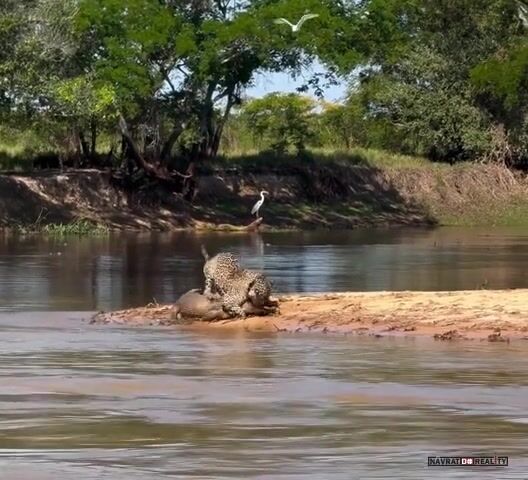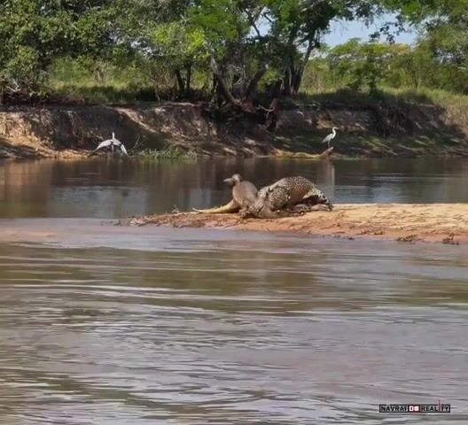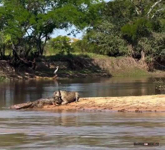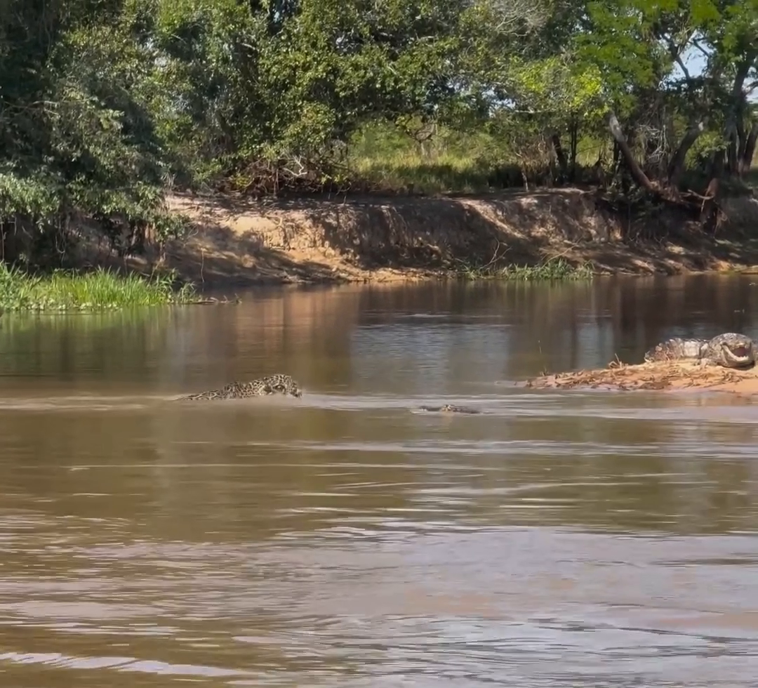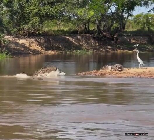 To je přesně scéna, která byla v dokumentu o jaguárech na ČT. Navíc číča si ještěrku v pohodě odtáhla na druhý břeh.