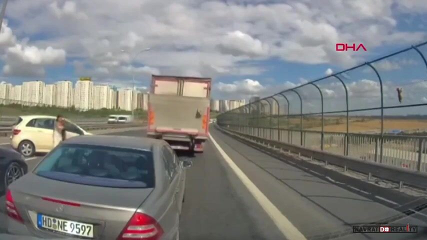 Píča, co si to rozběhne napříč mostem. Kretén, předjíždějící v odstavném pruhu, všechno dementi. Kdyby kunda vylízaná počkala, až jí frajer zastaví u kraje, aby v klidu vystoupila a kotě sundala. I když možná by to do nich ten předjíždějící dement zezadu napálil.
