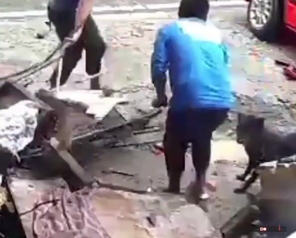 Obří balvan zničil auto i psí klec při tajfunu Wipha, pes však zázračně přežil
