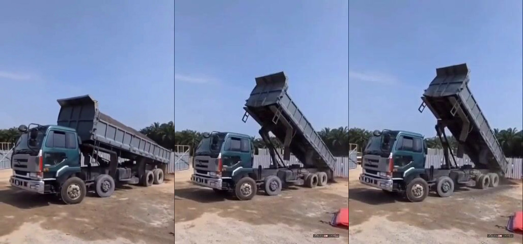 kokot Negerský keď videl, že mu to nevysýpa, namiesto aby sklopil trochu naspäť a potiahol dopredu, aby sa náklad uvoľnil dvíhal korbu ďale jak kokot Negerský a fyzika mu po správnosti dala poriadnu príučku!!!