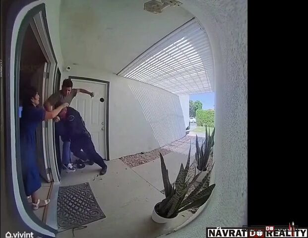 Útok nožem na policistu v Cathedral City zachytila kamera u dveří