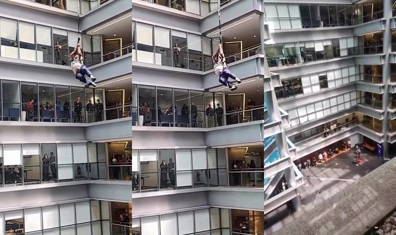 Visel tam ne nekolik,ale 20 minut,aniz ho byli schopni zachranit,lano se prerizlo nahore o rozbite sklo.