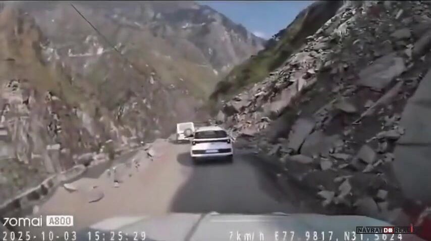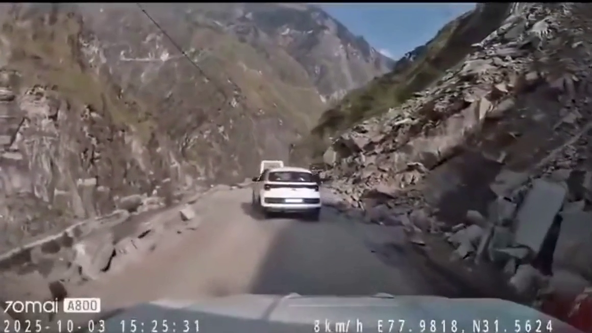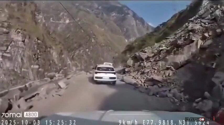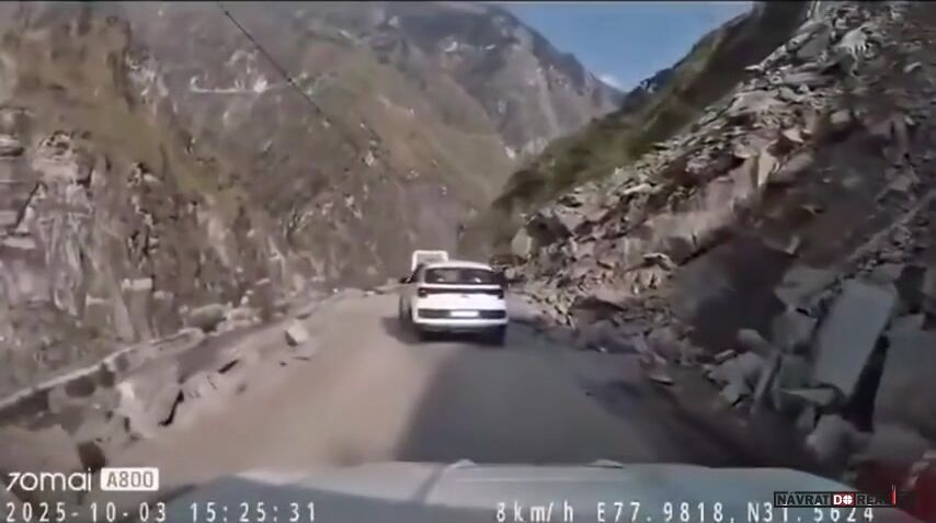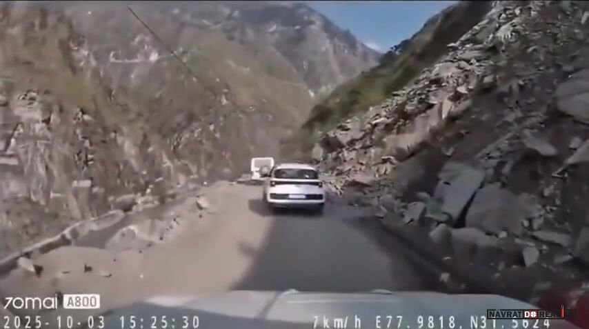 Obrovský balvan se zřítil na jedoucí auto