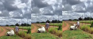 tak, není to býk ale kráva, borec byl odkopnut do Zimbabwe a dostal zásah elektrickým proudem.