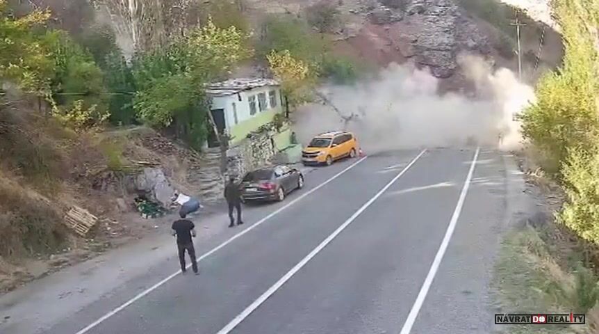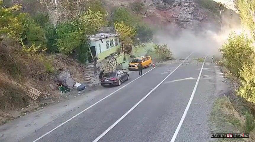 Na silnici Kara Haydar v Turecku došlo k dramatickému incidentu během údržby elektrického vedení, kdy se při práci bagru uvolnil velký kus skály z nedalekého svahu. Balvan se začal valit směrem k silnici, přičemž jen o vlásek minul projíždějící vozidla, okolní domy i přítomné pracovníky. Nakonec se skutálel z cesty dolů do údolí, aniž by způsobil zranění nebo větší škody.