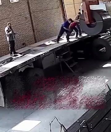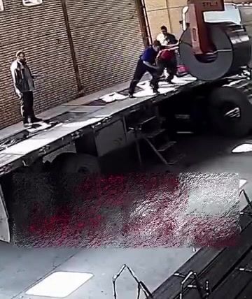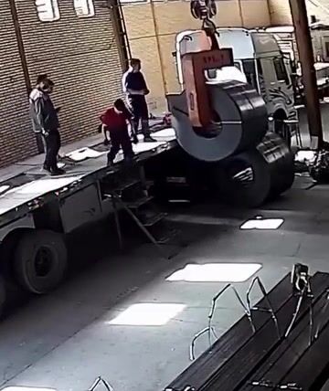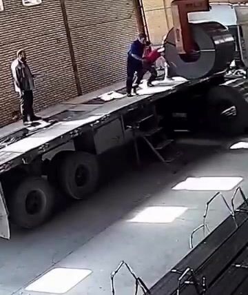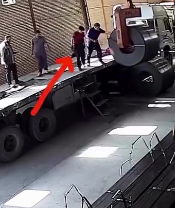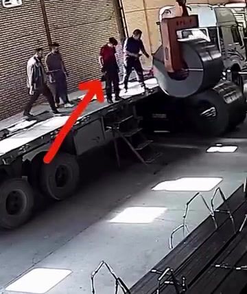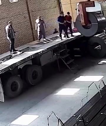 Během vykládky těžkého ocelového svitku došlo k mimořádně nebezpečné situaci, když pracovník jen chvíli předtím sestoupil z nákladního auta a v tu chvíli selhalo zdvihací zařízení, které mělo svitek bezpečně udržet. Obrovský ocelový náklad se následně zřítil hned vedle pracovníka, který tak jen o vteřiny unikl vážnému zranění či smrti.