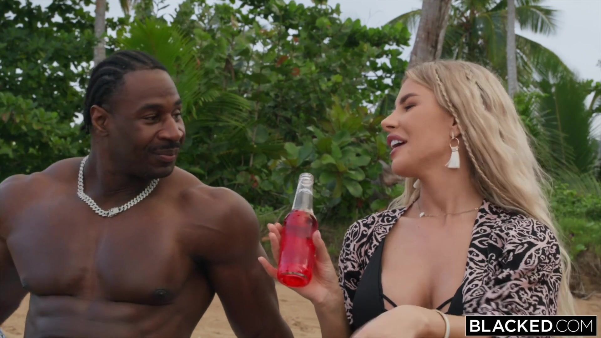 Blond surfařka vymění svého plážového přítele za potetovaného velkého černého nadržence