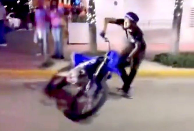 Skok přes silnici na motorce vyšlo téměř bez problémů...