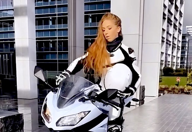 Tady škoda motorky ve špatných rukou. Tak hlavně že to buchtě "mocinky" sluší jak je vystajlovaná.