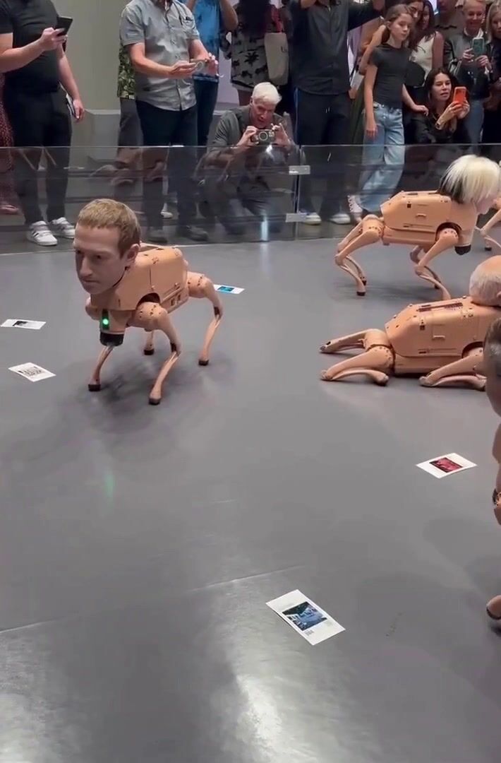 Na výstavě Art Basel Miami Beach 2025 představil americký digitální umělec Beeple svou provokativní instalaci Regular Animals – mechanické psy se silikonovými hlavami Elona Muska, Marka Zuckerberga, Jeffa Bezose, Pabla Picassa, Andyho Warhola i samotného Beepla, kteří se volně pohybují, kamerami snímají návštěvníky a následně „vypouštějí“ tištěné obrazy, některé s QR kódem pro NFT; každý kus se okamžitě vyprodal za 100 000 USD, což je při přepočtu přibližně 2,08 milionu Kč, a projekt tak vyvolal bouřlivé reakce – jedni jej považují za geniální satiru na technologické elity a svět umění, druzí za absurdní spektákl postavený na šoku, nicméně Beeple tvrdí, že dílo komentuje, jak digitální mogulové a algoritmy formují vnímání reality stejně, jako kdysi tvořili obrazy slavní umělci.