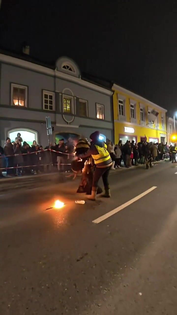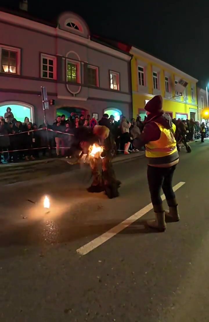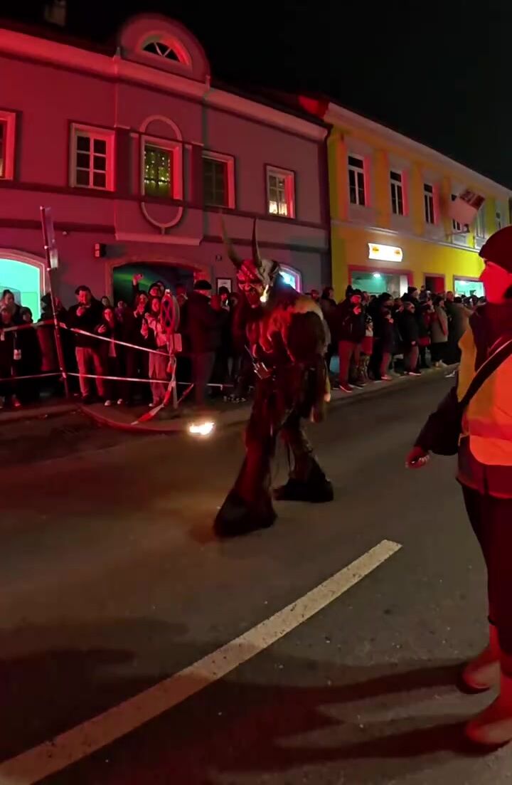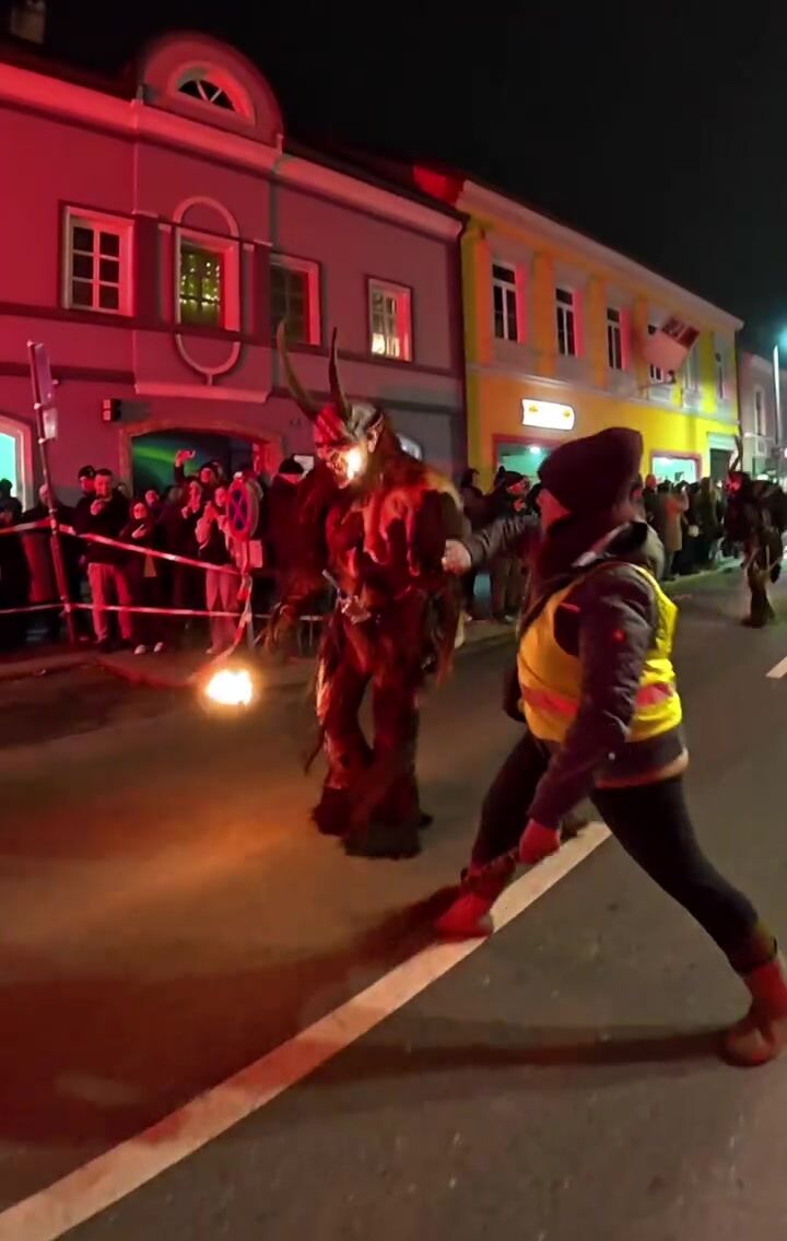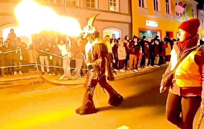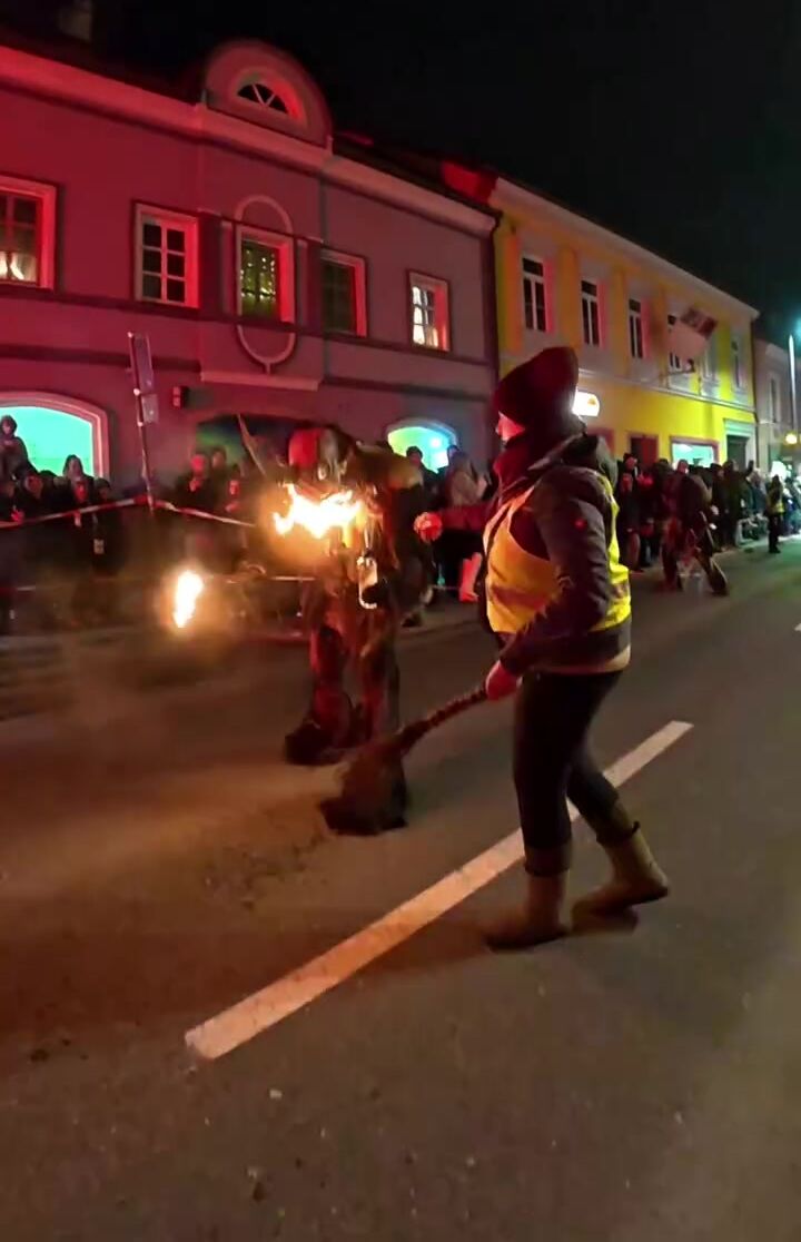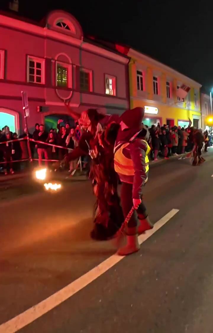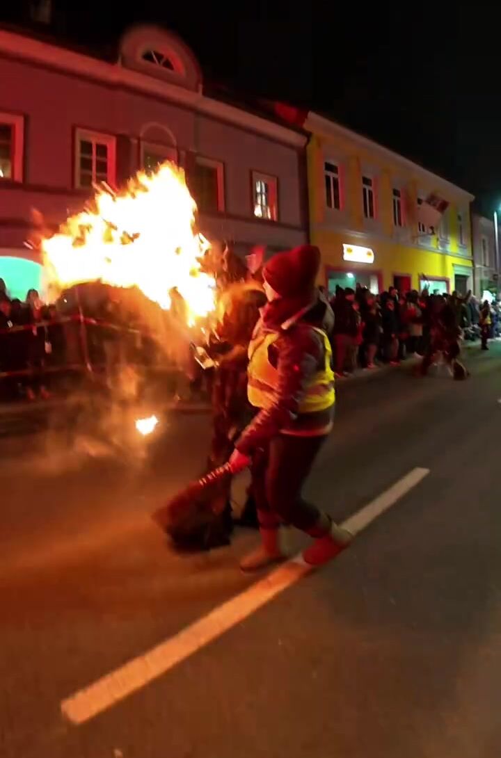 Během tradiční Krampus show, při níž postavy démonických čertů předvádějí ohnivá vystoupení připomínající alpské folklorní tradice, došlo k momentu překvapení – jeden z Krampusů při plivání ohně nezvládl situaci dokonale a lehce mu vzplála i maska. Ohnivé efekty jsou součástí každoroční podívané, tentokrát však kromě plamenů z úst krátce zahořela i jeho propracovaná čertovská hlava, což diváky nejprve vyděsilo, ale okamžitě poté uklidnilo, když se ukázalo, že se jedná spíše o drobný fail než katastrofu. Plameny byly rychle uhašeny, maska nezaznamenala vážnější poškození a samotný Krampus vyvázl bez zranění, takže vystoupení mohlo pokračovat ve veselém duchu a událost se nakonec stala spíše úsměvnou historkou než tragédií.