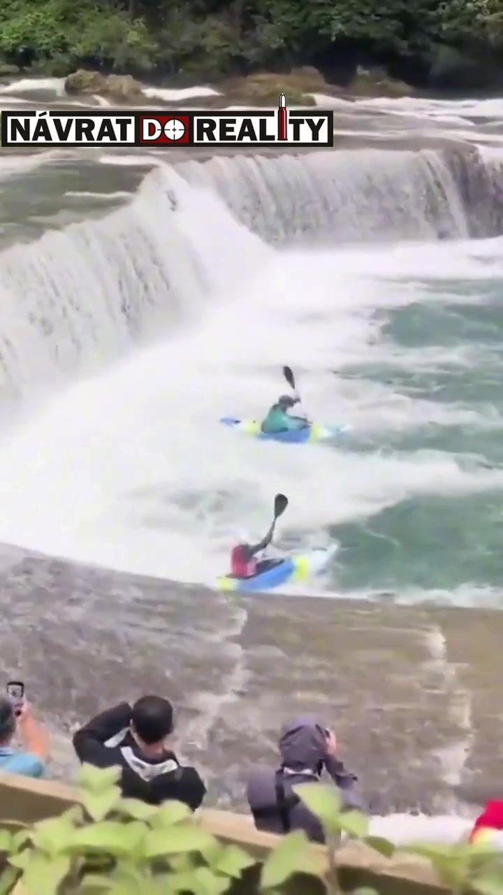 Milovníci adrenalinu se 15. listopadu rozhodli sjíždět dravé peřeje a menší kaskády pod známým čínským vodopádem Chuang-kuo-šu na řece An-šun, kde natočené záběry ukazují tři kajakáře mířící k menšímu vodopádu a následně přepadávajícího přes jeho okraj; krátce poté však z rozbouřených peřejí vyjeli pouze dva, zatímco třetí uvízl v silném vodním válci, odkud se nebyl schopen vlastními silami dostat, a tak museli zasáhnout jeho kolegové, kteří na člunu připluli na pomoc, jeden z nich se připoutaný lanem vrhl do ledové vody a po krátkém boji kajakáře úspěšně vytáhl, díky čemuž muž vyvázl z dramatické situace bez větší újmy a celý incident se nakonec obešel bez tragických následků.
