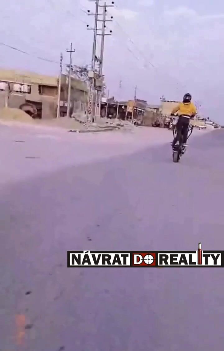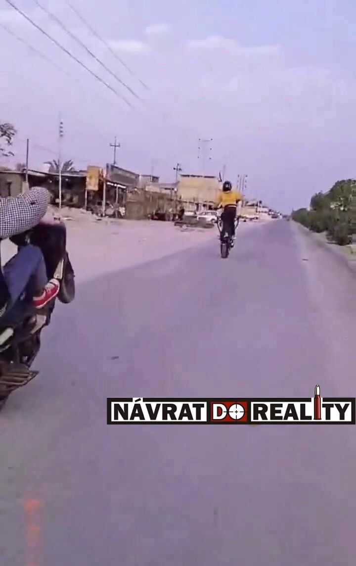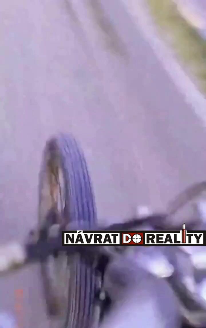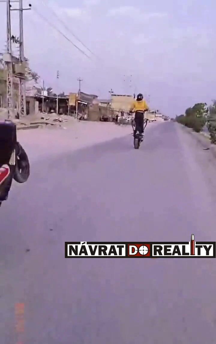 Nebezpečný průjezd motorkáře mezi dvěma autobusy