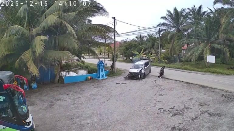 V oblasti Kuala Selangor v Malajsii došlo k vážné dopravní nehodě, při níž byl motorkář po srážce s víceúčelovým vozidlem vymrštěn vysoko do vzduchu. K incidentu došlo na silnici v lokalitě Bukit Hijau, Jeram, kde se motocykl jedoucí po komunikaci střetl s odbočujícím vozidlem. Celý děsivý okamžik zaznamenala bezpečnostní kamera umístěná v blízkosti místa nehody. Závažnost zranění motorkáře není známa.