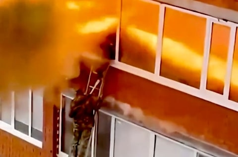 Požár bytu v kazachstánském Uralsku vyvolal silnou explozi