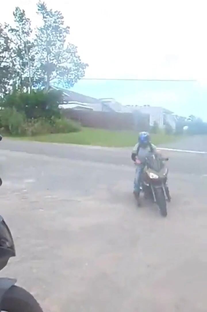 Skok přes silnici na motorce vyšlo téměř bez problémů...