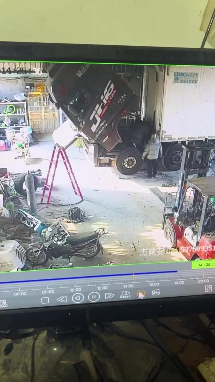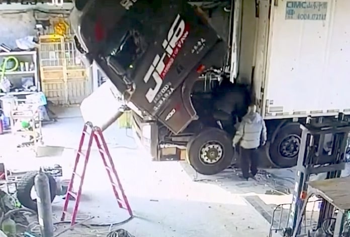 Dne 28. prosince došlo v okrese I-šuej (Yishui) ve městě Lin-i v čínské provincii Šan-tung k dramatickému incidentu, který zachytily bezpečnostní kamery – během práce na těžkém nákladním voze se náhle zřítila kabina řidiče přímo v okamžiku, kdy na vozidle pracoval dělník. Podle majitele vozidla pana Janga pracovník instaloval chladicí jednotku a po běžném dokončení práce měla být kabina standardním způsobem spuštěna dolů, avšak z dosud ne zcela jasných důvodů došlo k jejímu nekontrolovanému pádu. Muž zůstal zaklíněný pod kabinou a musel být vyproštěn pomocí vysokozdvižného vozíku, který kabinu nadzvedl. Naštěstí celý incident neskončil tragédií – pracovník utrpěl pouze lehké zranění levého ramene a nebyla zjištěna žádná vážná poranění. Pan Jang, který má v oboru více než 26 let zkušeností, uvedl, že něco podobného nikdy nezažil a že byl šokován, přestože stál jen opodál.