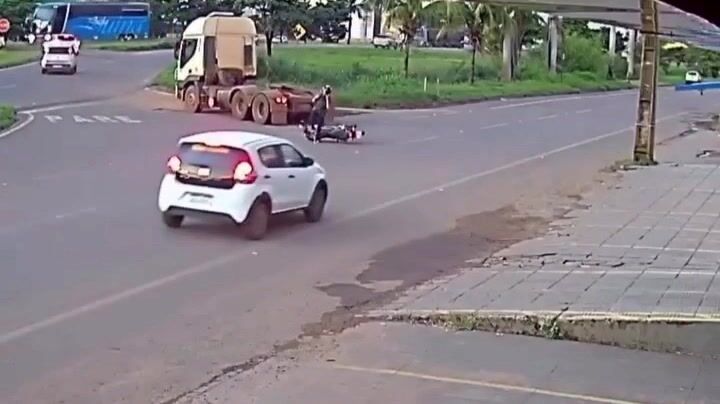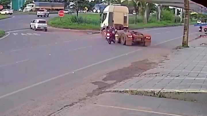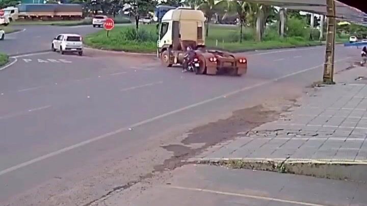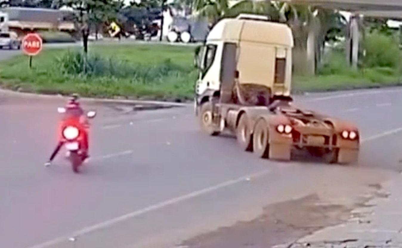 K vážnému a velmi nebezpečnému incidentu došlo poté, co řidič kamionu zaparkovaného na krajnici provedl krajně nezodpovědný manévr při najíždění zpět na silnici, když se bez kontroly zpětných zrcátek náhle rozjel do jízdního pruhu, čímž uzavřel cestu motocyklistovi jedoucímu po vozovce. Motorkář už neměl čas bezpečně uhnout, prudce zabrzdil, dotkl se zadního kola tahače, ztratil rovnováhu a spadl na silnici, přičemž jen díky obrovskému štěstí nedošlo k jeho přejetí a rozdrcení těžkým nákladním vozidlem, což by s vysokou pravděpodobností mělo fatální následky.