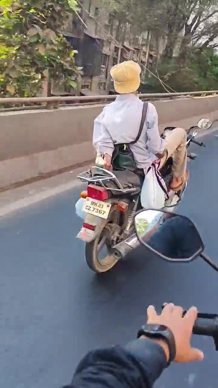 Muž převážející dospělou krávu na motocyklu