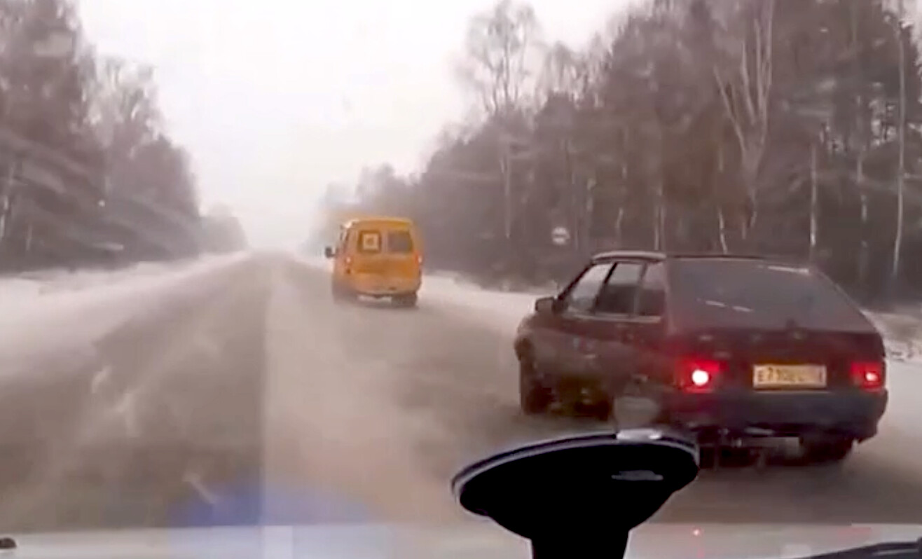Teď jde jen o to, který Rusák je větší kokot, jestli ten s kamerou, co začal předjíždět, aniž se podíval do zrcátka a nasral se před již předjíždějícího nebo jestli ten druhý předjíždějící se klasicky s ruskou arogancí a debilitou začal srát, kam neměl.