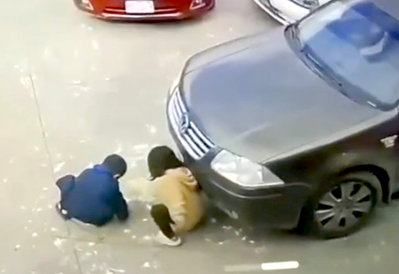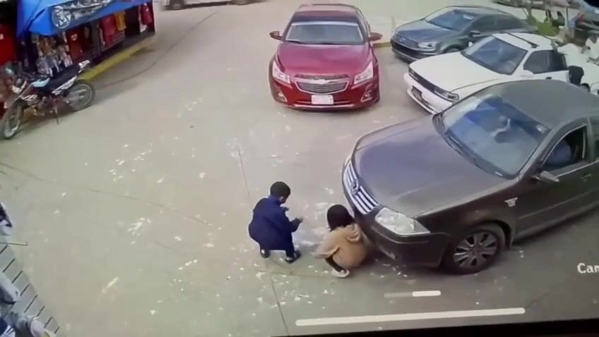 To je stejné jak v Číně. Parkoviště není hřiště, ale matky tam na parchanty serou, nehlídají je a tihle malí sráči ještě nemají pud sebezáchovy a nejsou schopni opatrnosti, takže pak dělají nebezpečné píčoviny a takhle to končí. Jestli to přežila, vsadím se, že si už na parkovišti nikdy hrát nebude, jen skrze krutou bolest si v palici navěky zapíše, že taková nebezpečná věc se nedělá. Pouliční škola života - k nezaplacení.