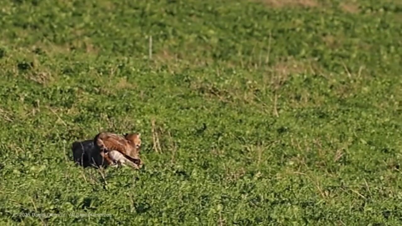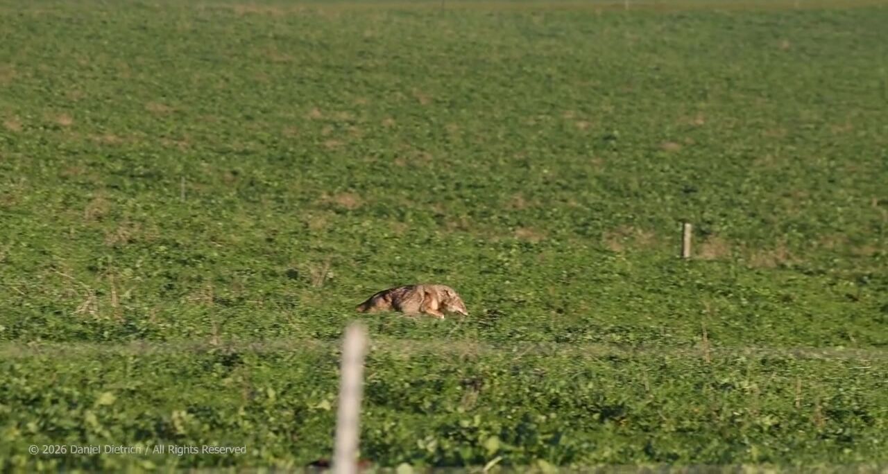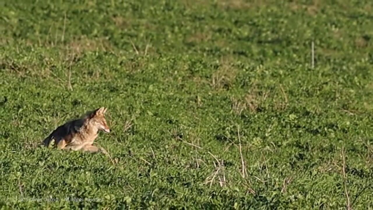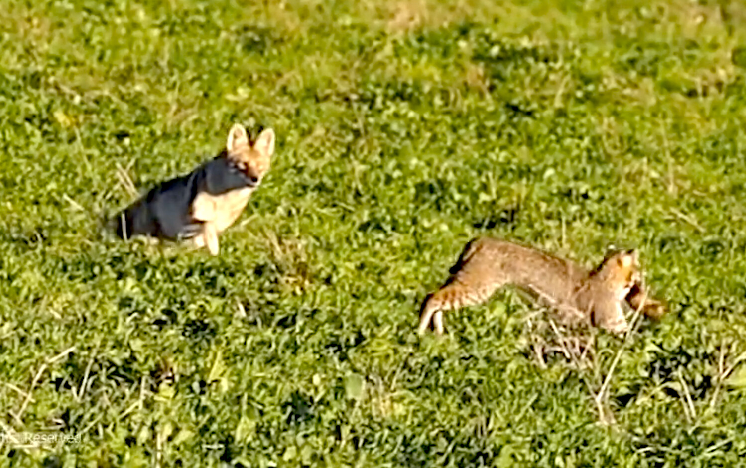 Kojotovi se ten večerníčkový manévr moc nepovedl, udělal ze sebe odrazovou plošinu pro rysa a potom už jenom blbě čuměl.