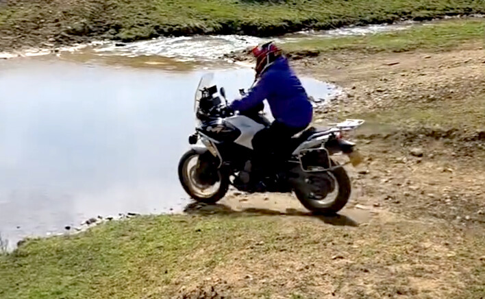 pak malý driftik na pisku za vodou a je snadno v píči. Popravdě se divím, že až za vodou, hladké gumy a způsob vjetí do kaluže dávaly srandě z cizího neštěstí zelenou už dříve