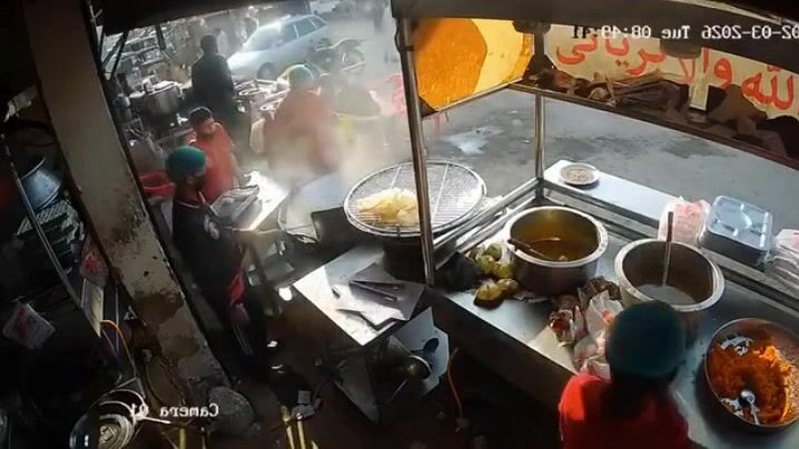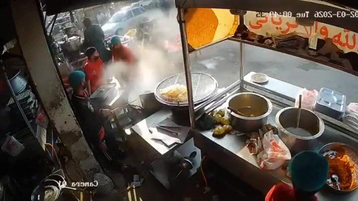 Neovladatelné auto v Karáčí najelo do velké pánve plné rozpáleného oleje